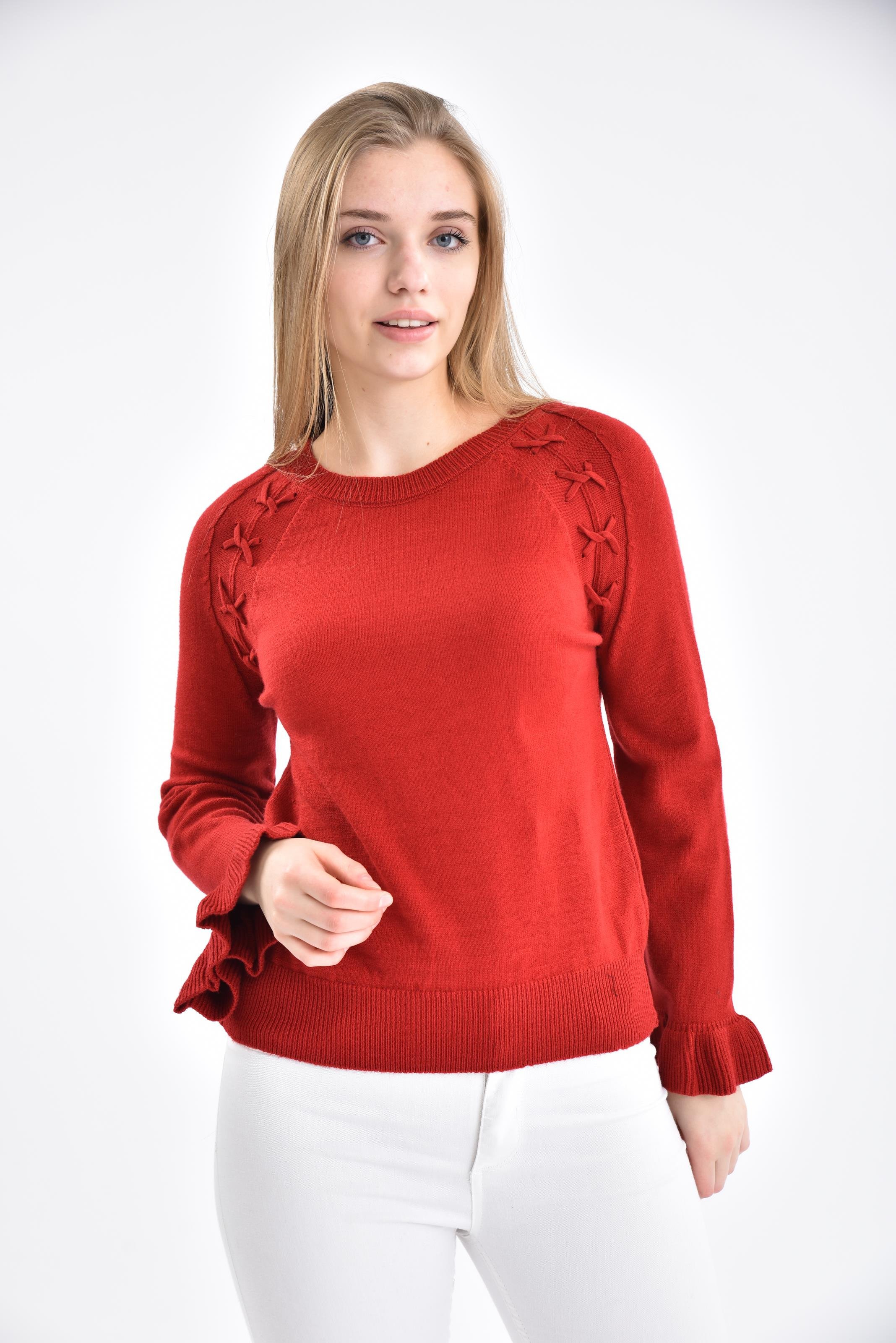 FTZ Women Kadın Bağcık Detay Kısa Kazak Kırmızı 21-1244 (21-1244)