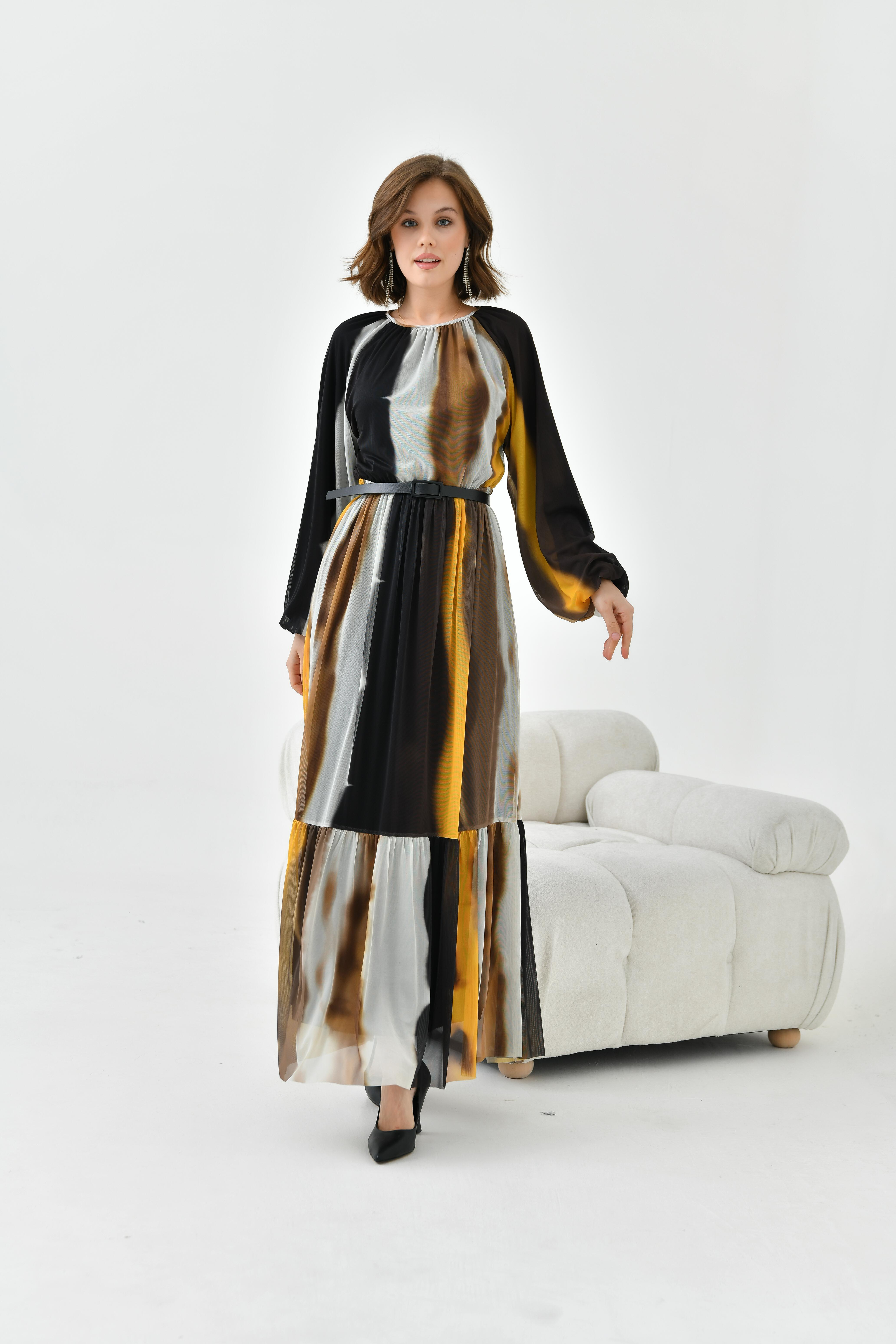 FTZ Women Kadın Desenli Tül Elbise Sarı 30757 (30757)