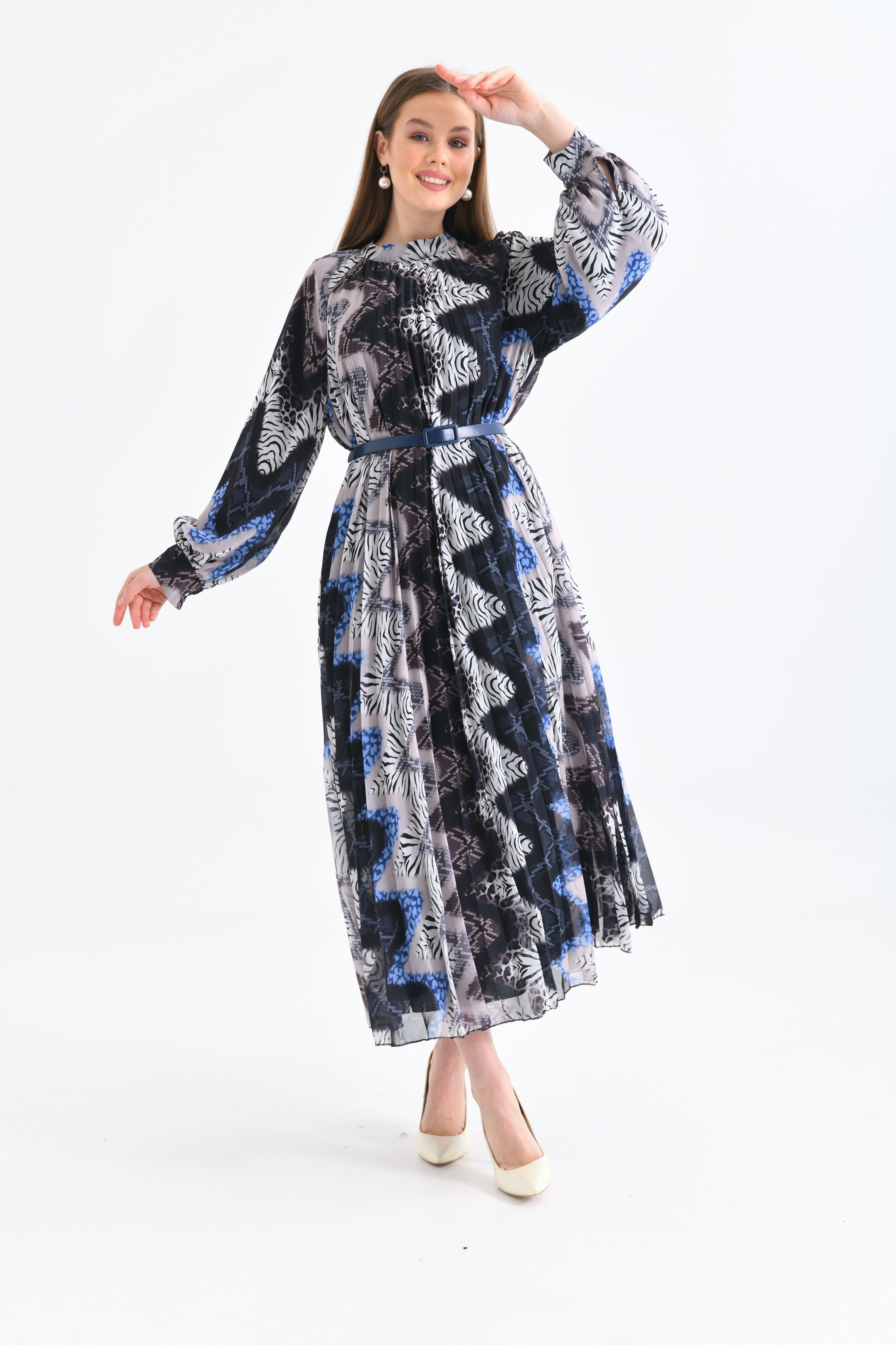 FTZ Women Kadın İpek Şifon Elbise Mavi 30451 (30451)