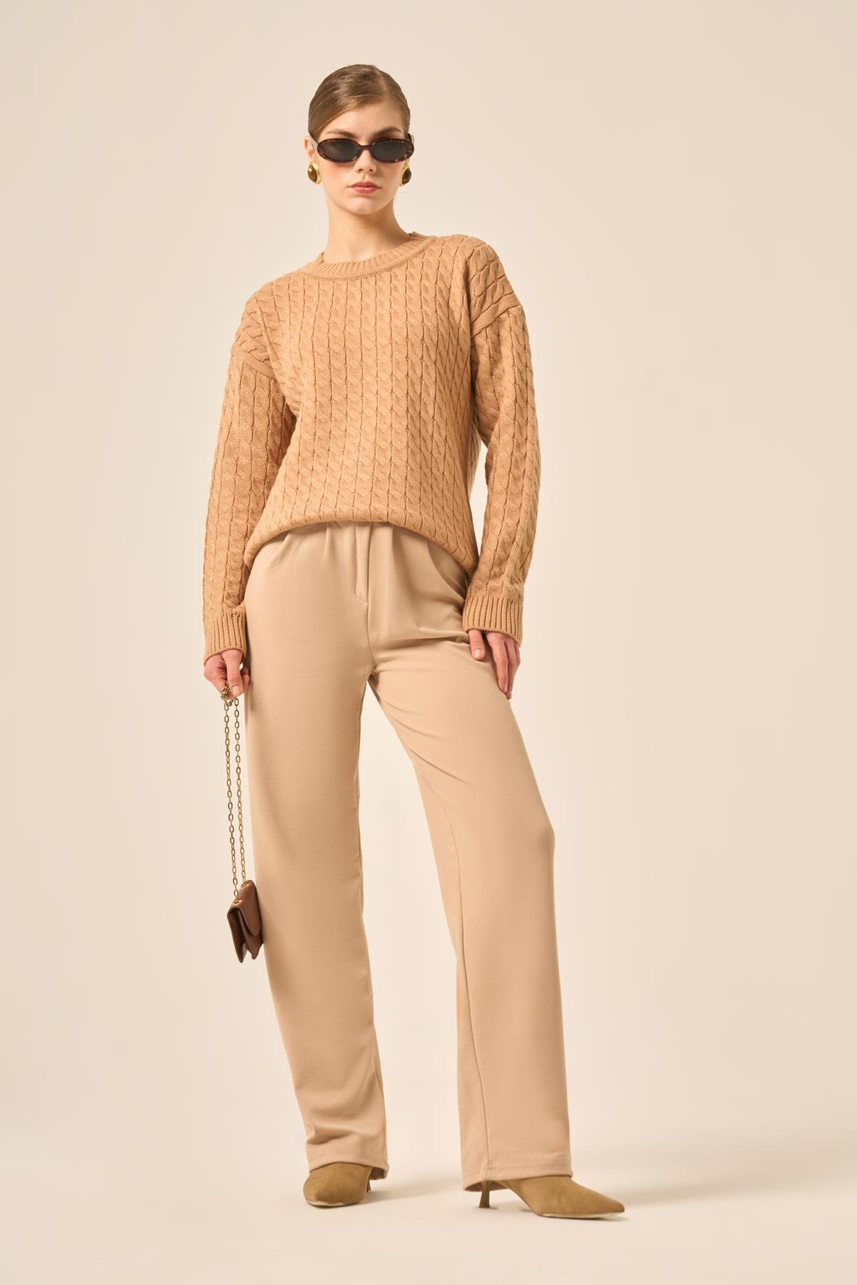 FTZ Women Kadın Saç Örgü Kazak  Bisküvi 20882
