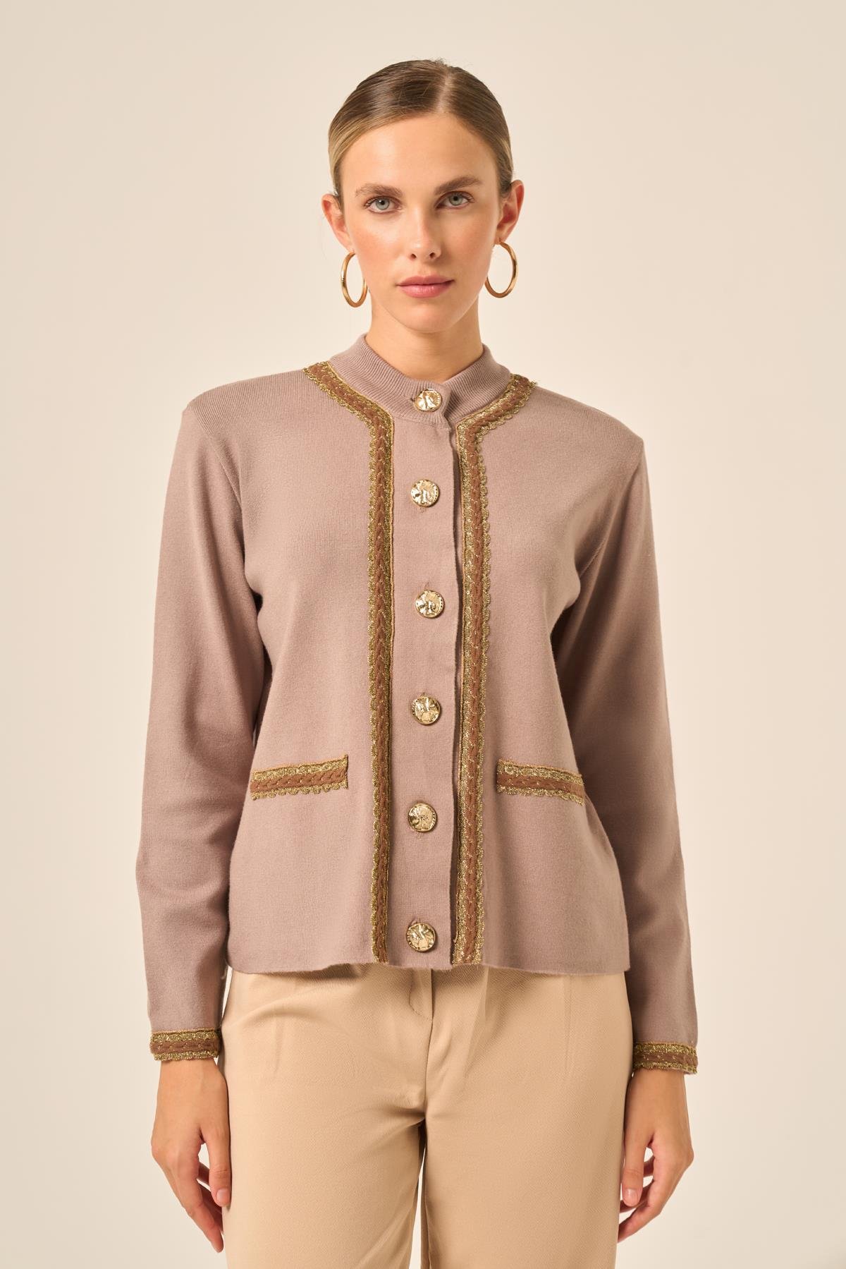 FTZ Women Şerit Detaylı Hırka Sütlü Kahve 25199 (25199)